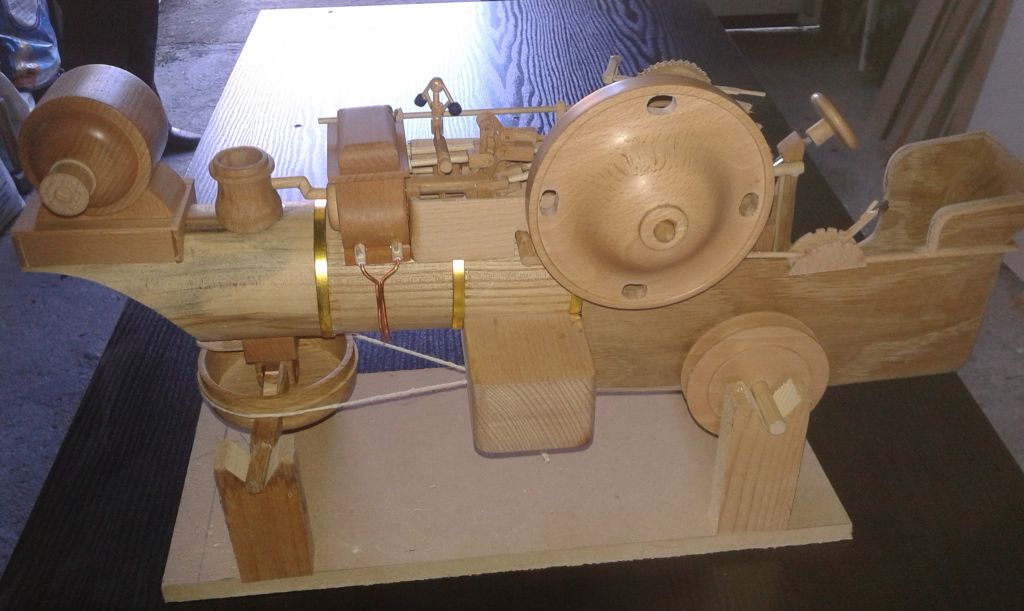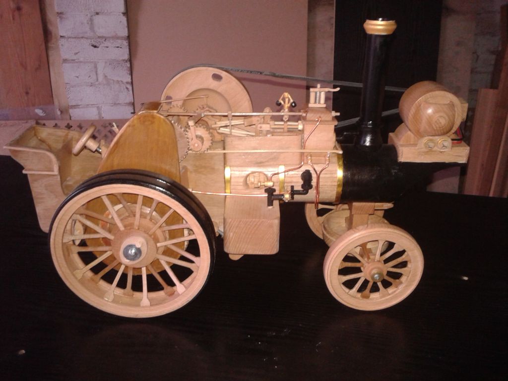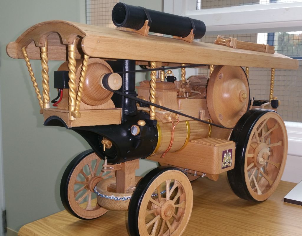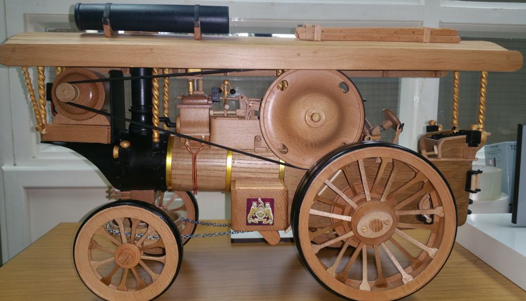 Geoff Pickering made this 2" Fowler in wood from a General Arrangement drawingThe motion works as do the pistons and slide valves and the gears